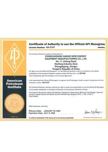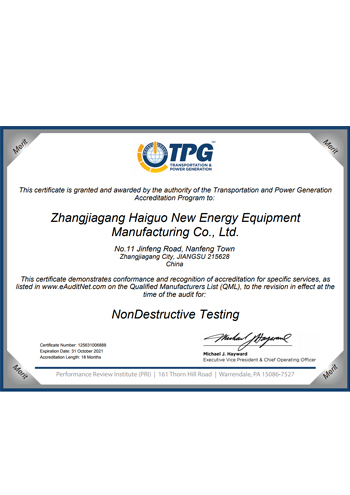 公司取得了美國ABS、法國BV、中國CCS、挪威DNVGL、韓國KR、英國LR、日本NK、意大利RINA等全球八大船級社的工廠認證證書,建立了完善的產(chǎn)品質(zhì)量管理體系。先后獲得了美國API20B資質(zhì)證書、API6A資質(zhì)證書、APIQ1體系證書、TPG的NDT認證證書、TPG 熱處理認證證書、歐盟PED等認證證書,同時也通過了一些國際客戶具有高度專業(yè)要求的資格認證。